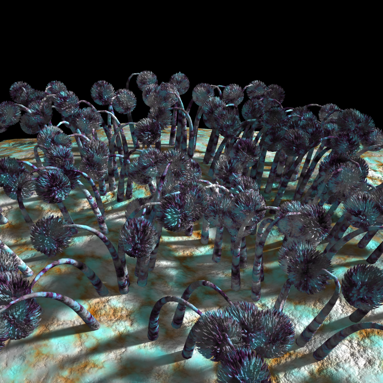 the vertex plane has a cellular shader in the displacement channel to undulate it a bit