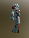 (N.B. At Fuseling's suggestion I started a conversion of it to G8, but I ended up shelving it.  It was too big a pain in the bum trying to redo all the sleeve bones and poses, and the original didn't sell enough to justify the amount of time it was going to take.  In the years since it came out it's sold 644 copies.  By comparison, Security! Genesis 2 Male has sold more than 900 and the G2M male underwear sets around a thousand each.  I can't compare it to a female set because I only ever DID one large female clothing set for G2F; I only ever did the Furisode to begin with because Fuse twisted my arm.  I don't hate doing all female clothing, I just hate doing female clothing that isn't a robe, a loincloth set, or made of metal.)