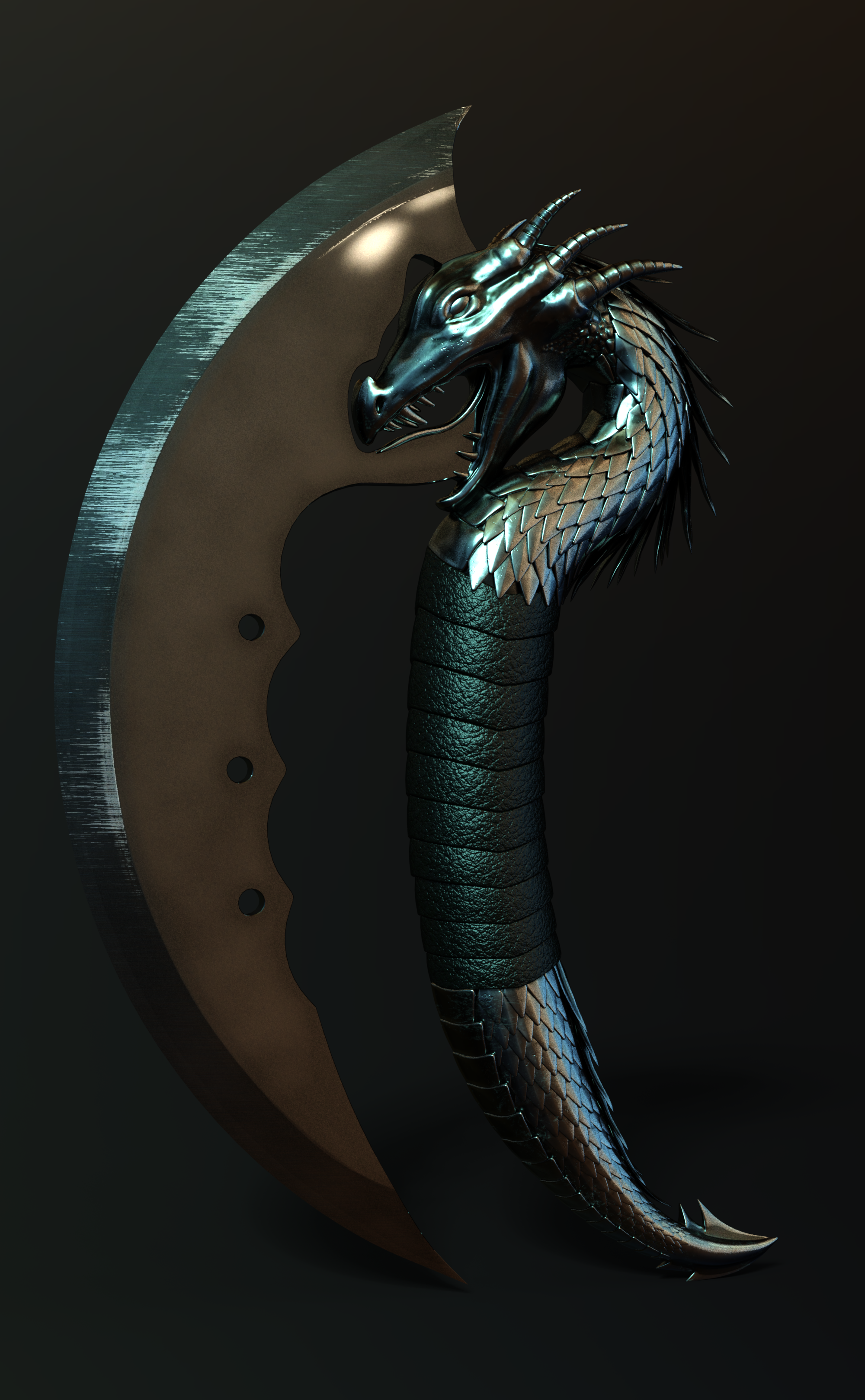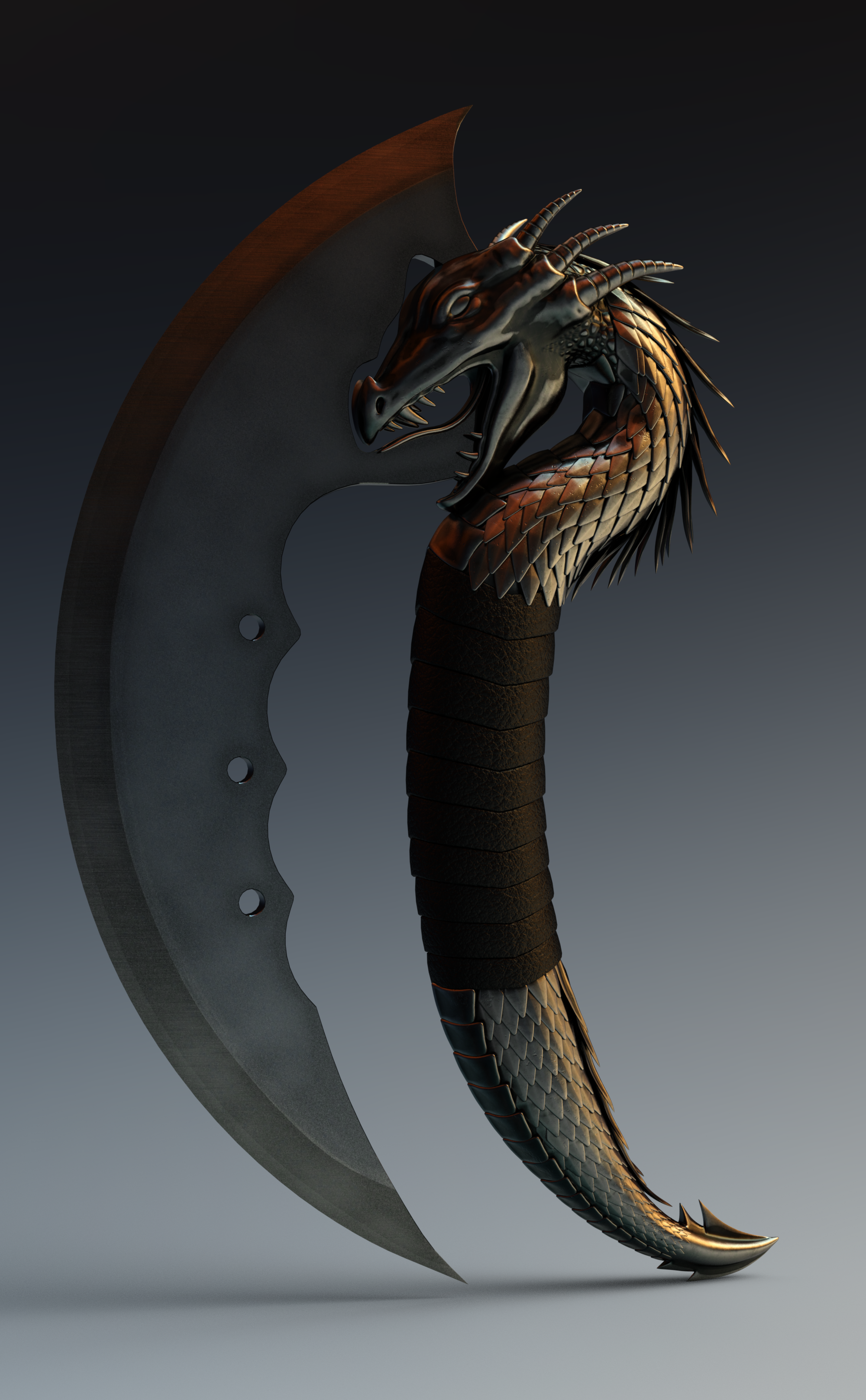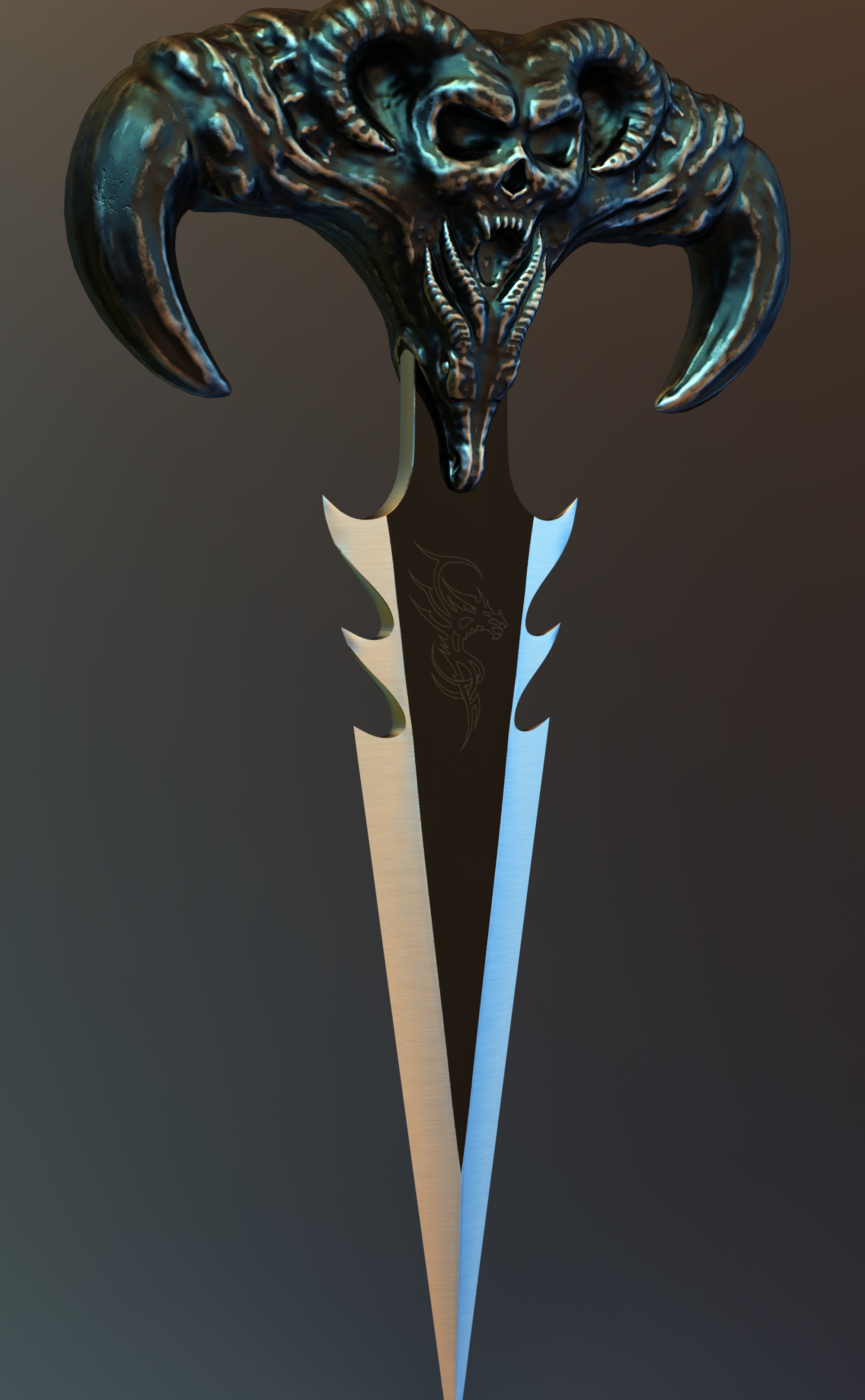 I am bored sitting here in the hotel room waiting out this hurricane. (we are fine, it turned far enough to the east from where we evacuated to, that we are just getting really gusty winds and rain.) Since I don't know if we are going to lose power or not I am sticking to simple things that won't make me cry if I suddenly lose power lol. I did a quick study on what a big difference lighting can make in a render. (and, I thought these knives were super cool and very well done!) its the Fantasy Blades by Wicked Creations. The two dragon knives are exactly the same except for the lighting. I rendered the demon blade just because I wanted to see what it looked like lol