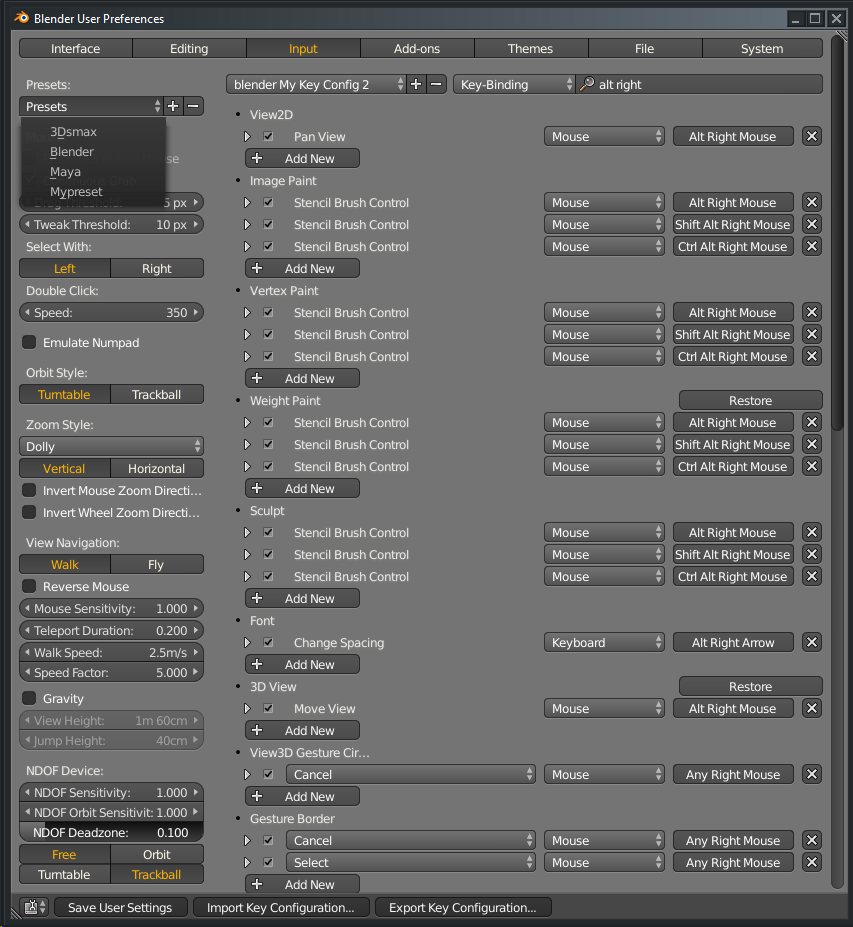 I never got used to the default 3D navigation controlls in Blender. Even though they offer you a list of Presets to choose from for to mimic the variouse other programs.
