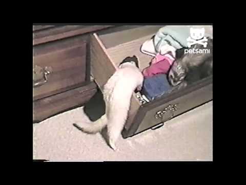 It used to bug me so much because for the longest time I kept finding the door unlatched and I thought I was leaving it open... Until I actually watched him undo the hook... Not the smoothest operation, but he did it well.... He also loved riding in the pocket of my army jacket when I rode my bike... Unfortunately that eventually ended when he decided that it would be more fun to ride on my shoulder and he almost fell off.