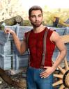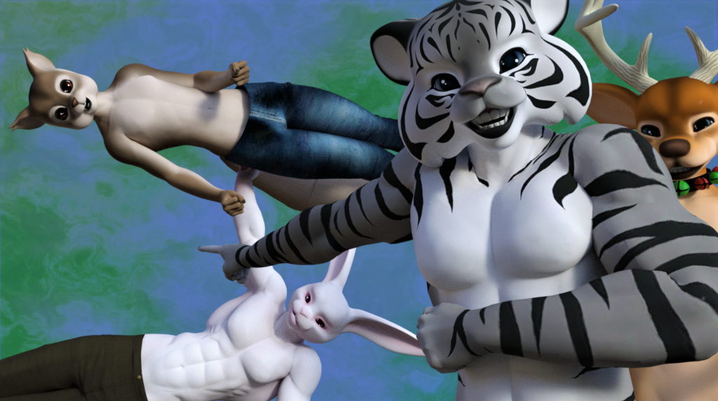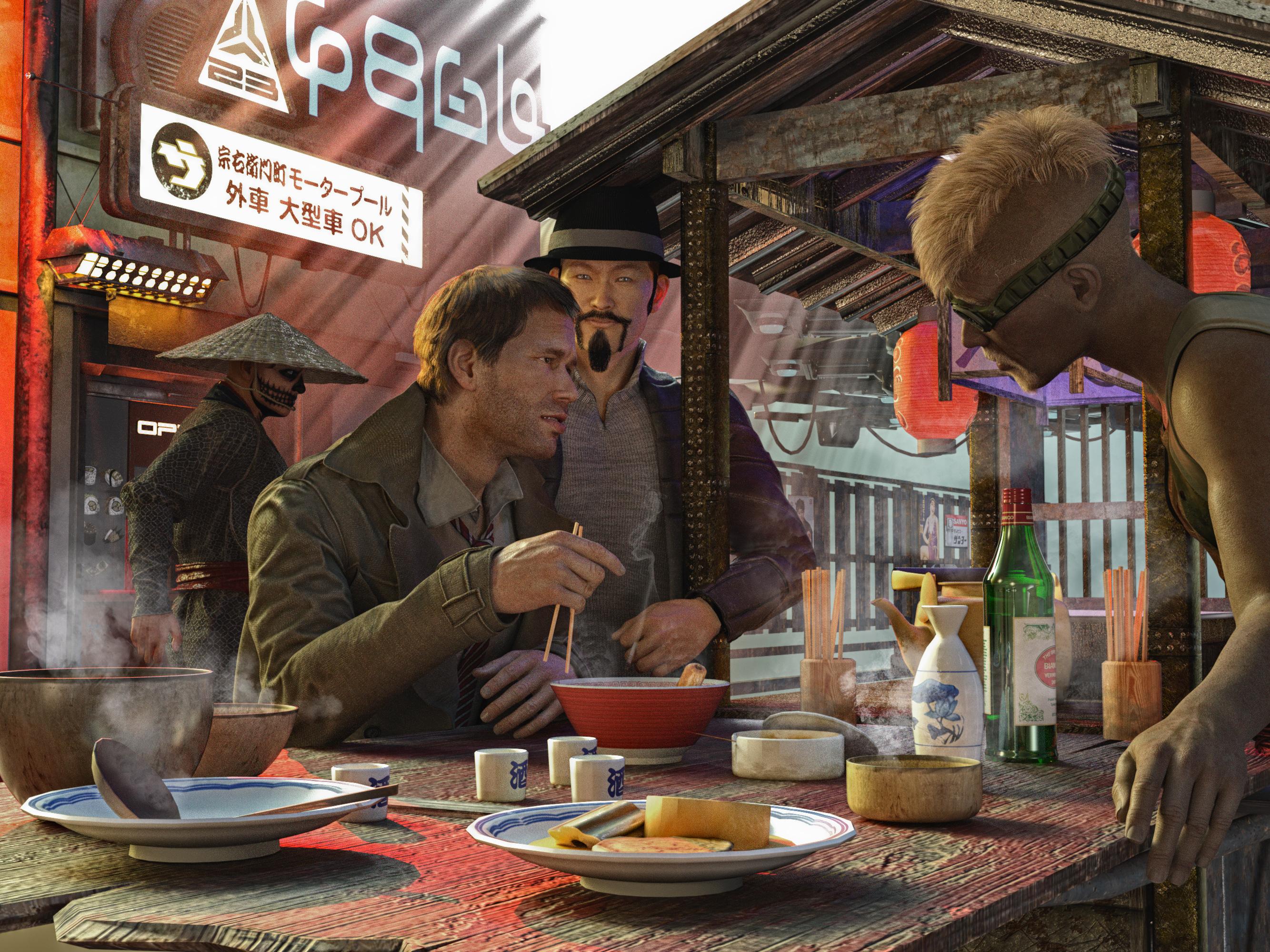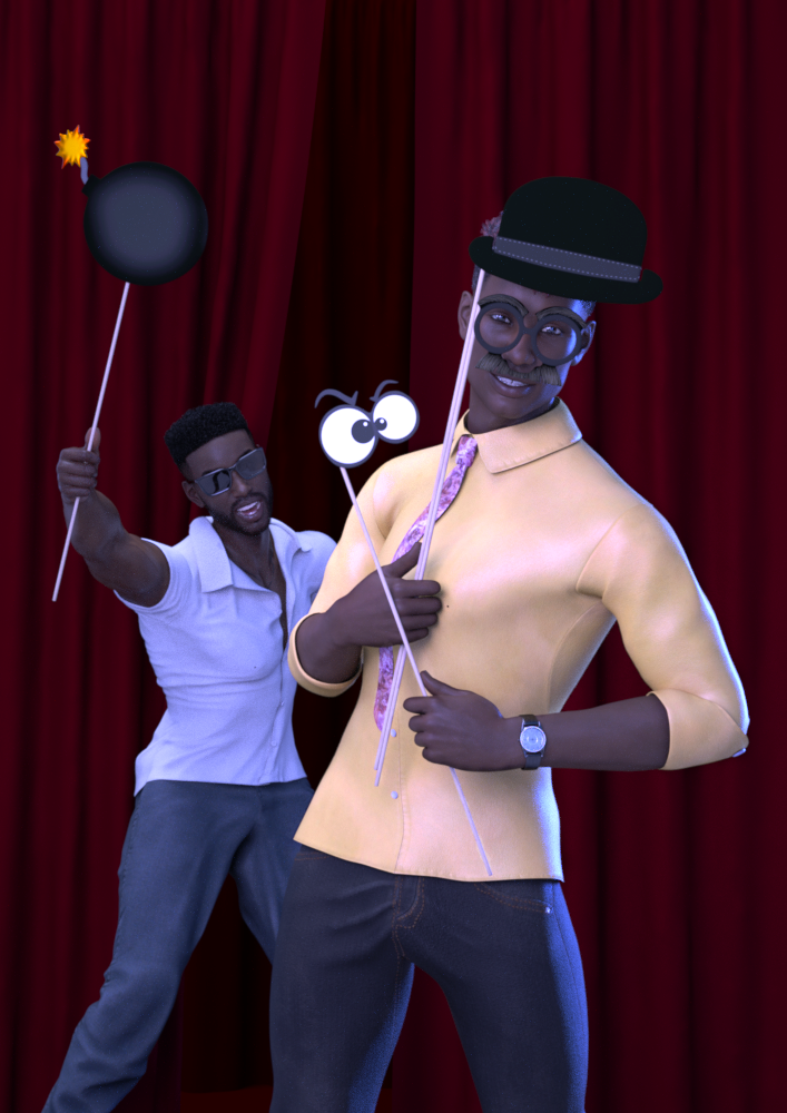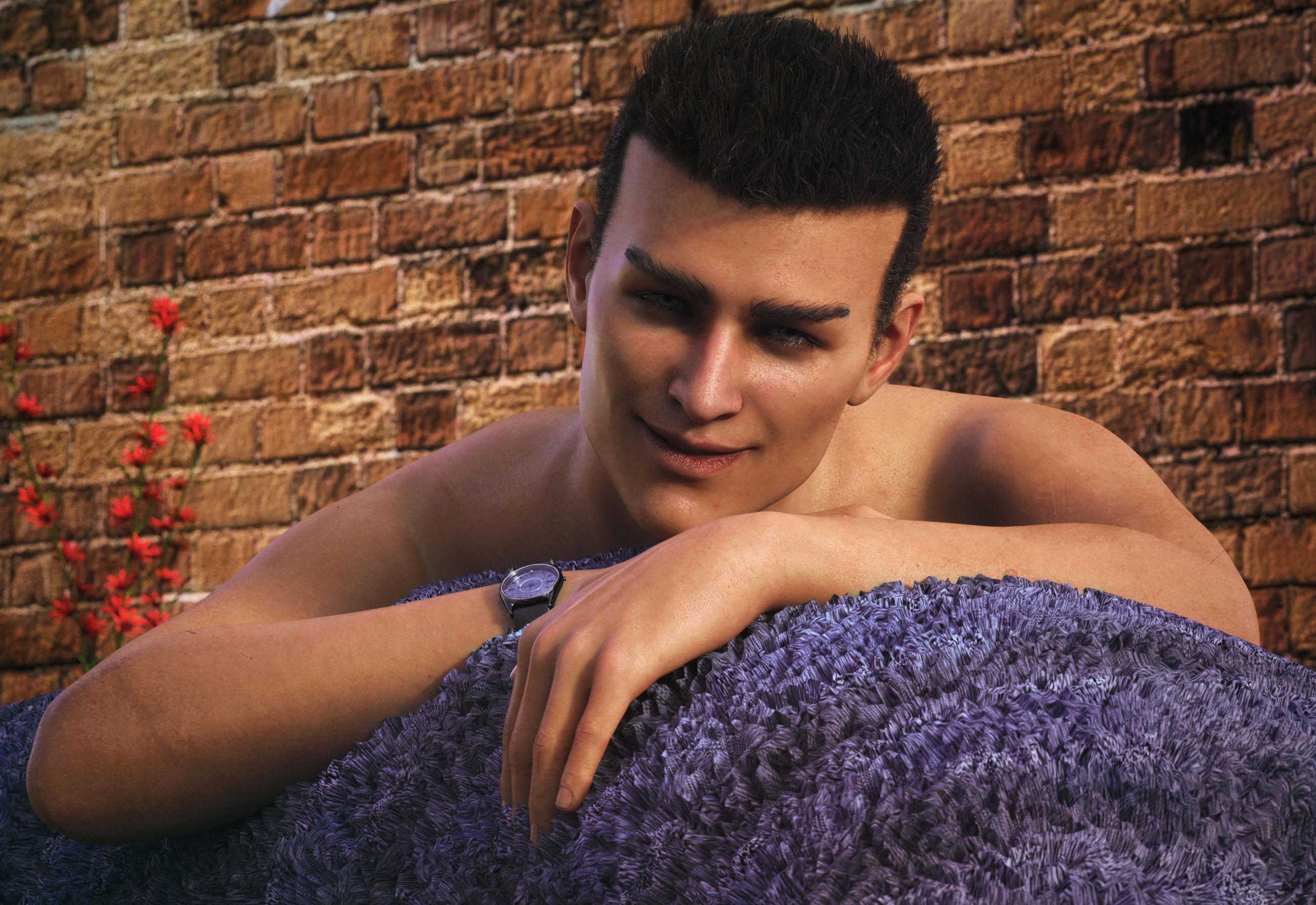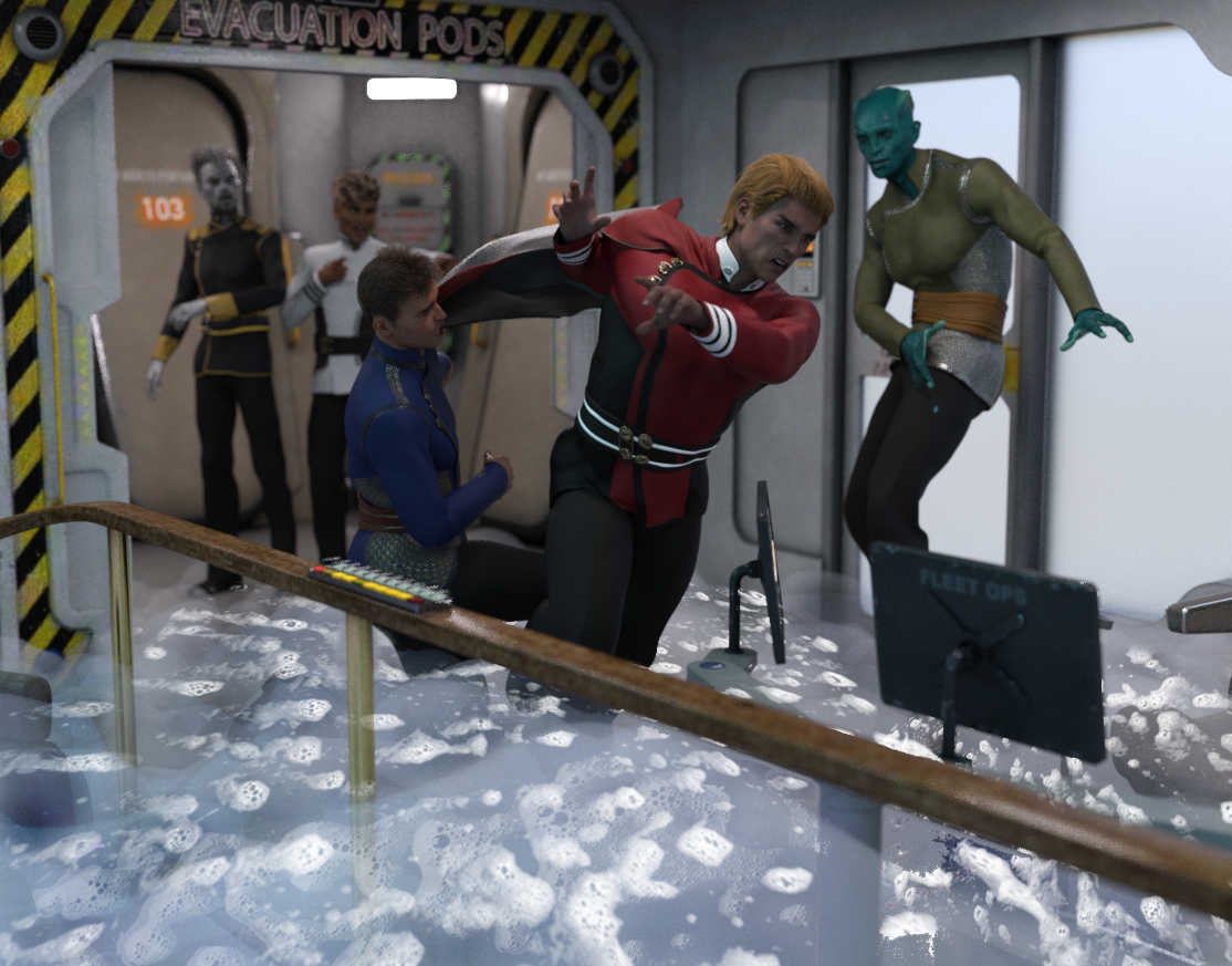 *simply scaled up, translations/rotations adjusted as required, and then parented to the relevant body part before posing him. The main circlet of the necklace-loincloth was removed in postwork by combining one render with it and one without as required.