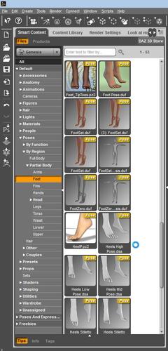 3. Click on Default>Poses>by Region>Partial Body>Feet