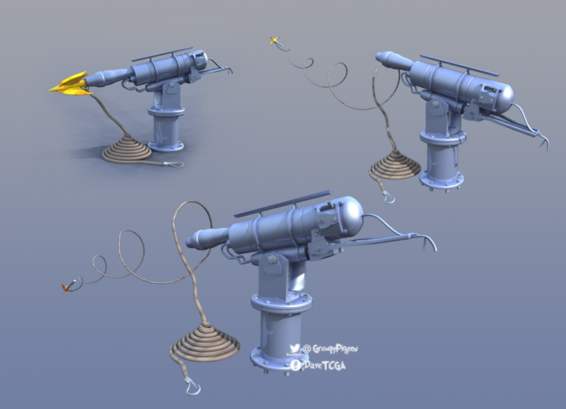 added an extra shot prop.. just unhide and hide the harpoon and rope to see it.. a couple of morphs added to the shot harpoon, select the gun to adjust tilt.