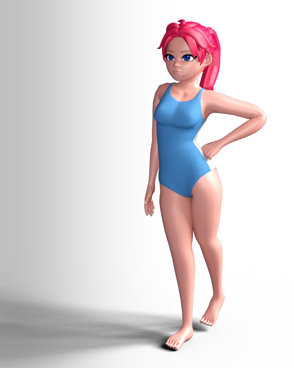 In case anyone wanted to know "how well" LPG (LowPolygonGirl by tweety on Pixiv/Booth) worked in DS, below is a quick render. Many things work, many things don't.The hands don't bend well at all, they deform, but the fingers bend well. The face parts, are broken out as seperate items (lashes, tongue, teeth, etc), so they don't follow the face morphs. Those are the main issues.