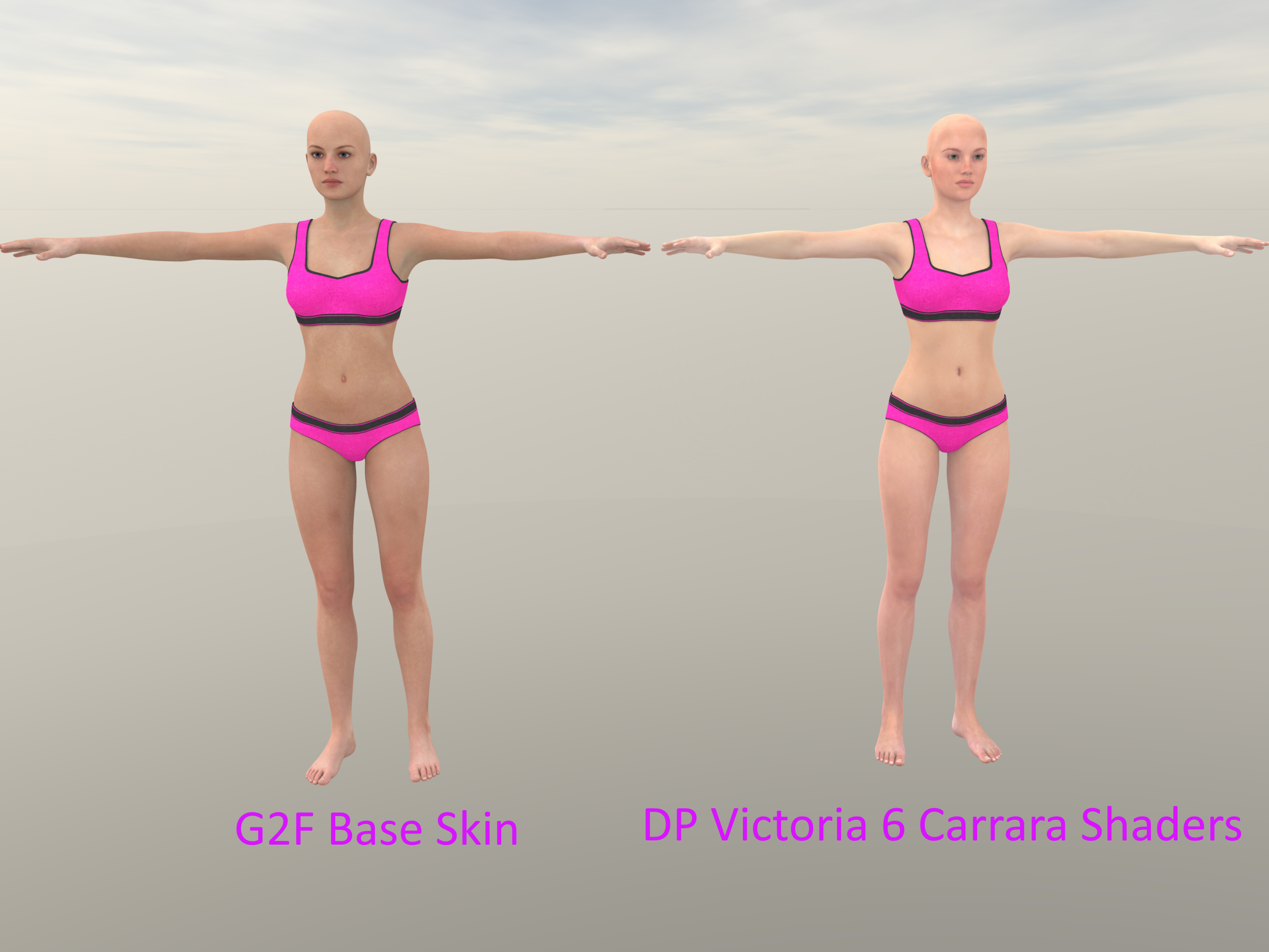 Did a basic comparison of G2F with a base skin and Ringo Monfort's DP Victoria 6 Carrara Shaders which have a nice Subsurface Scattering addition to the shaders https://www.daz3d.com/dp-victoria-6-carrara-shaders