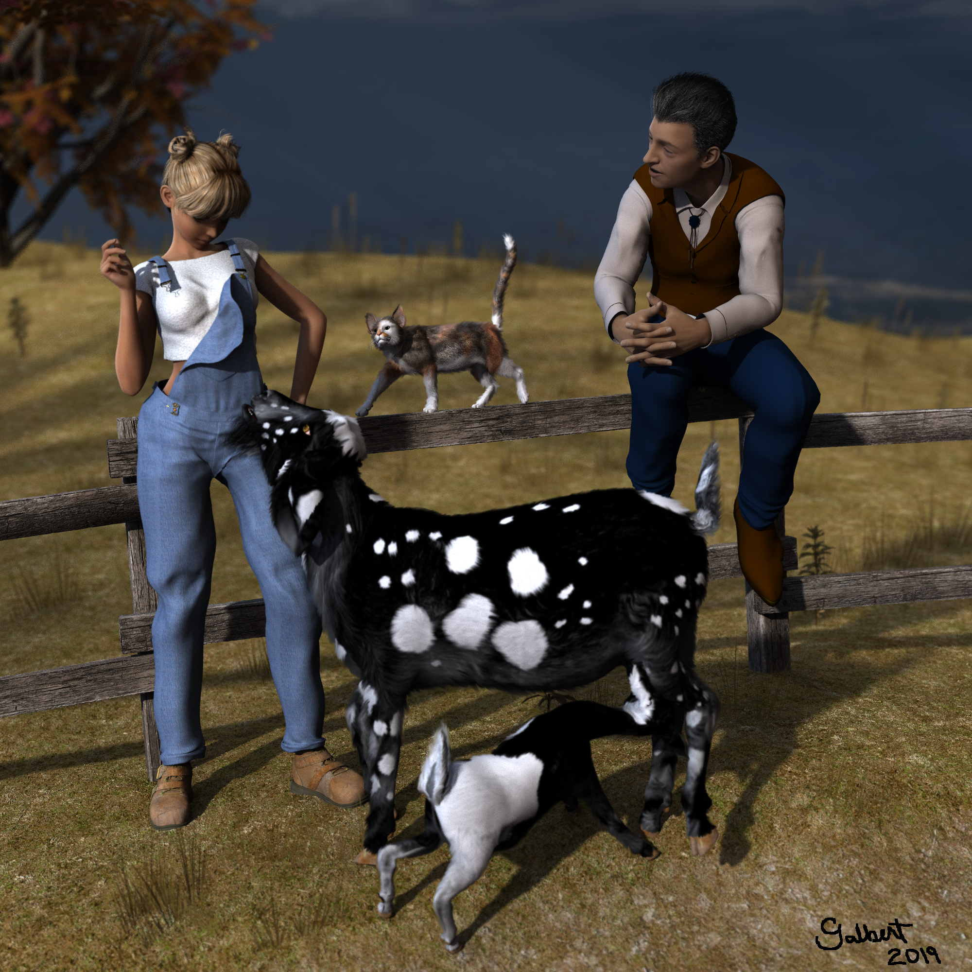 This image uses the G2F-G8F clothing converter, M4-G8M clothing converter, G3F-G8F Hair converter, G3M-G8M Hair converter ,and Look at Me's , Look at Each Other ,and Look at That . I love the Look at Me products, no more whirling the camera around trying to make sure my characters eyes are looking where I want them too ,no more vacant stare .And I used "Expression Mixer" too .The clothing converters are wonderful too allowing me to make use of older clothing on the newer figures ,there are so many adjustments avaiable to them......