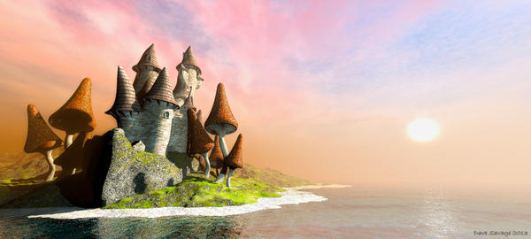 Shroom Castle (available from DAZ Store), My own mushrooms and David's pre-rendered volumetric sky HDRI (With Bryce sky edited to suit the scene).