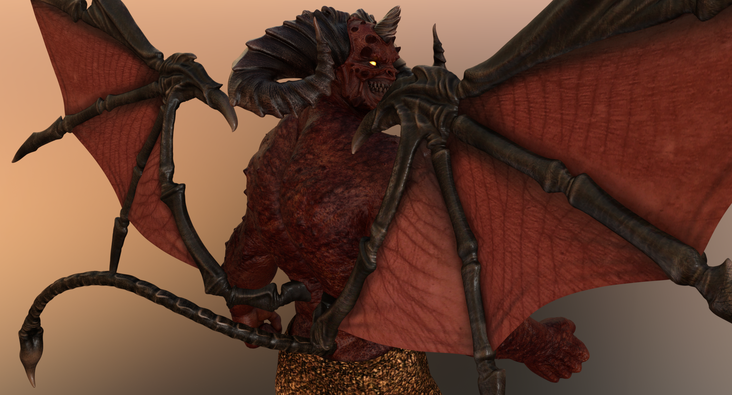 your Boned Wings for Midnight Skeleton look good on him but I just tried your Universal Demon Wings for Genesis 3 Male(s) and Genesis 3 Female(s) and these work and look great on him didn't even ask me what figure they were intended for and the wings pose controls work on him too some that doesn't always work when you use something intended for another generation if you can need to update info will work on G8 so you can get more sales on this one, also your Midnight Skeleton Anatomy Pack and Boned Wings for Genesis 3 and 8 and Midnight Skeleton look good on him too