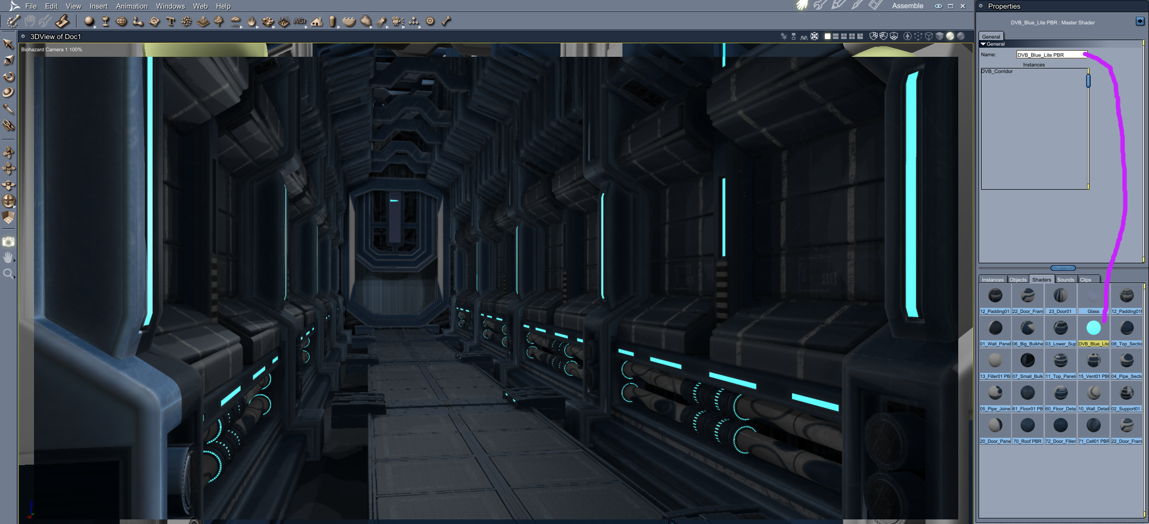 I dropped TheDigiVault's Biohazard into a scene, then in the Effects tab dragged the DUF materials shader into the box, but nothing changed in the shaders - still set to the usual Multichannel (?)