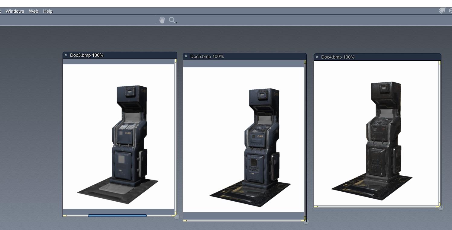 Left is the default Carrara render, middle is PBR render of default prop materials, and right is PBR render of a second material set that comes with the prop