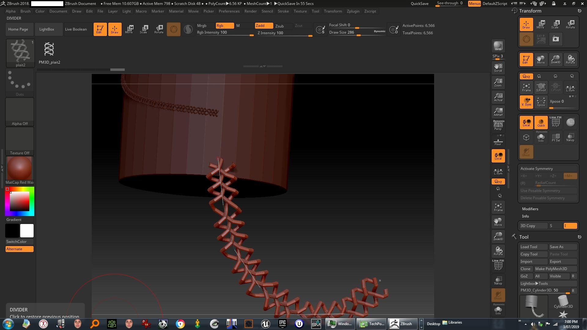 I made a plait curve brush for Zbrush but I used 3Dcheapscate’s mesh from shareCG as could not for trying do my own