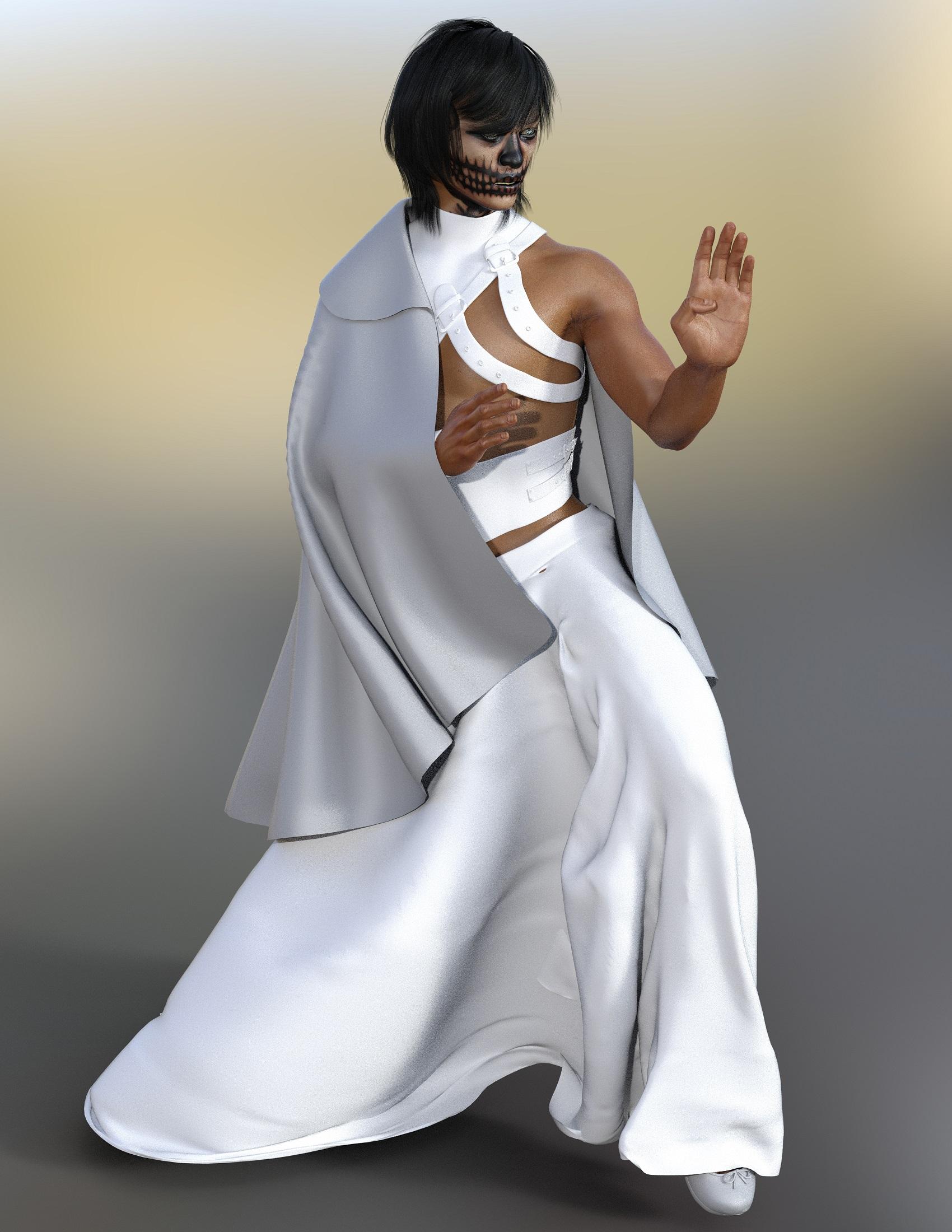 Sometimes I feel like I'm the only one here who wants more dForce draped outfits for G8M...here is a kitbash experiment trying to use the dForce Black Guard outfit with the dForce Matador's cape (and slippers). The Black Guard outfit kept exploding. I think I turned off self-colide and then simulated from this pose and it turned out good like this.