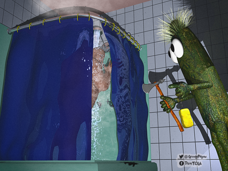 Psycho but with George in the shower and Lorenzo approching with a hairy cucumber