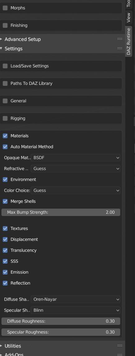 • Imports figure only, not a scene, unlike mcjTeleBlender and Thomas Larsson's Daz Importer.