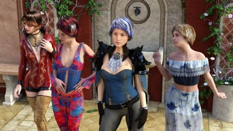 Just by way of comparison, I did do two renders. One using IRay and one Cycles after exporting using Diffeomorphic. You can be the judge but even this was not one-click. I suspect that you and @Padone have some settings already configured that apply automatically and which I have not yet discovered. I had to add an Area Light because the exported Ghost Light was not recognised. The eyes look all wrong to me and the fine detail is missing - on the dress, for example. The hair on the woman looks wrong too. On previous attempts I had problems with geografts but they are not visible in these renders.