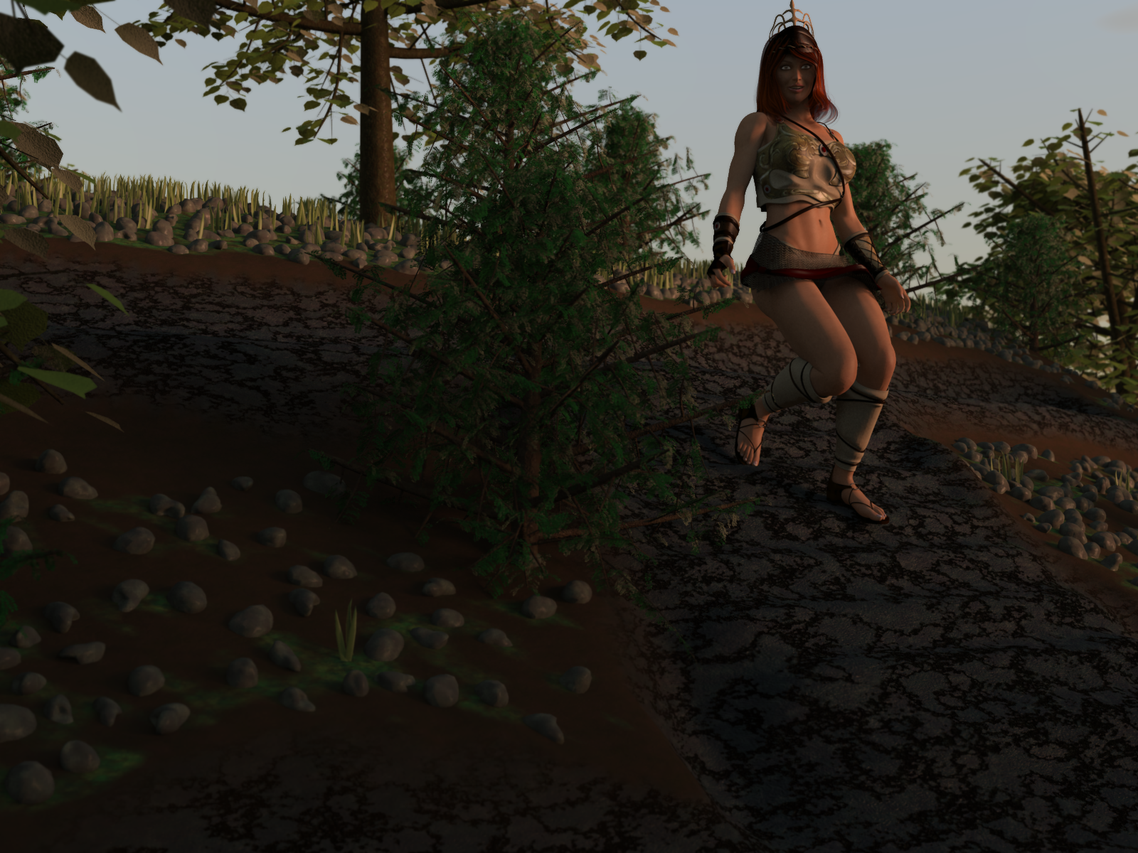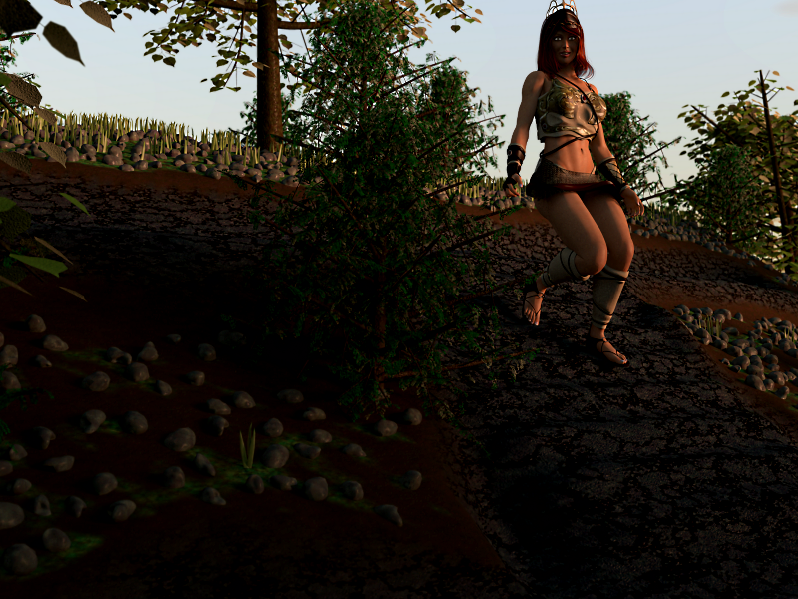 3.  Images must be "mostly" set up in Carrara.  Plants and terrains in category 1 must be created by the artist using a Carrara function, or at least be created using native Carrara items from "basic plants," basic leaves," or other such specific content that came with the program.  Shaders from any source are OK.