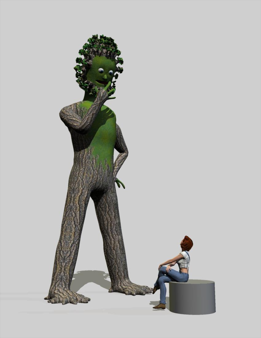What counts as a plant?  Is my tree man a plant?  Modeled and uvmapped in vertex modeler, shader mixer mask for torso painted with Carrara 3D Paint tools, modeled leaves then replicated on head for hair/beard.