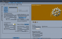 16)  Now make additional leaves by renaming and editing new loads of Leaf00.  For shape, use soft select in the vertex modeler for random curling and fluctuation.  For shaders, edit the current pic-shader to be a multi- channel mixer, or create a mixer in the color channel.  Then mix in a gradient set to "global" or "elevation" or some other factor that changes in space.  Create as many or as few additional leaves as desired to break up the monotony.