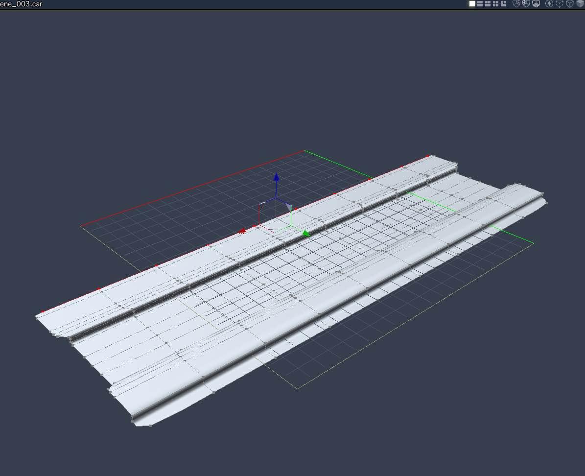 The street, sidewalk and beginning of the grass were originally modeled straight down the X axis. I then experimented in the Assembly room with the Bend and Twist Modifier, and when I dialed in what 'matched' my sketch I took the model back to the Vertex Modeler and applied the settings under Model > Deform > Bend and Twist. I then extruded the grass some more from that bent model.
