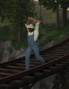 Here is an update of the John Henry project.  The mallet has been replaced with a maul, as per alert comments.  Genesis and custom overalls with shadow catchers against a background render from TangoAlpha's "End of the Track's" product.  A little postwork to fix some pokethrough on the left sleeve, adjust some shadows with shadow pass, and enhance the iron of the maul.