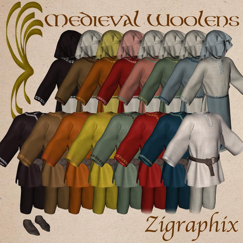 I uploaded my "Medieval Woolens" set for "Medieval Matt & Maddie" to ShareCG, in case anyone finds them helpful: