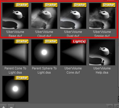 Content Library Pane (not Smart Content) > Daz Studio Formats > My Daz 3D Library > Shader Presets > omnifreaker > Uber Volume