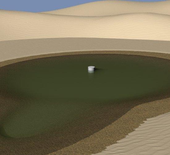 Attached you see the difference between almost clear and murky water (including reflection and refraction effects).