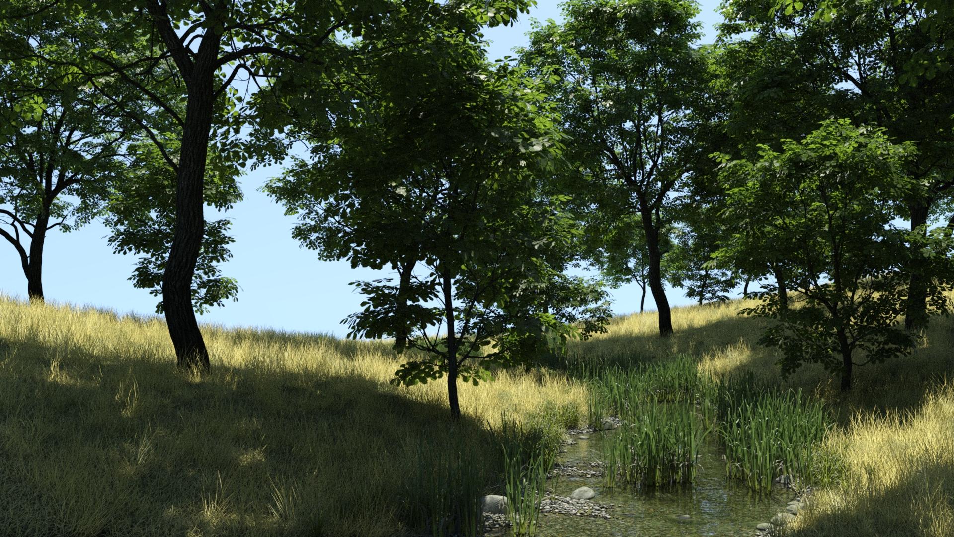 Thanks, Alex. The lighting is the USC Late Morning render settings preset that comes with UltraScenery. My camera is pointed toward the back right of the scene, so I changed the SS Time from 11:30 AM to 4:30 PM, to get lighting on the bear's side of the pond. No other lighting or tone mapping changes were made.