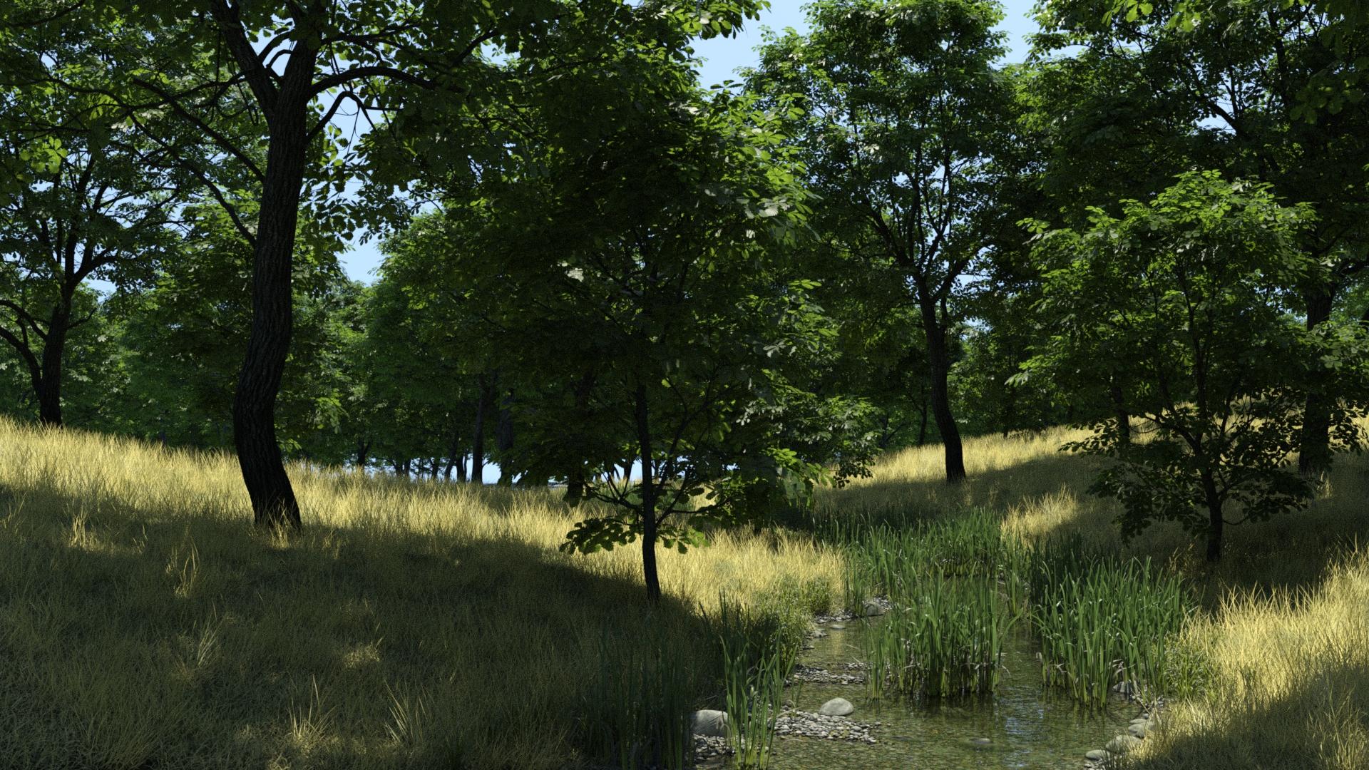 Have you tried the new Extend Forest option on the build tab? Here is a quick example if with and without Extend Forest. I didn't render either one very long, so there is still noise in the shadows. This is Feature River 1 and Ecology Oaks 2.