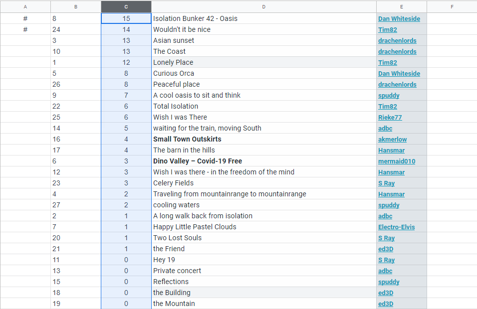 I just voited in the Carrara Challenge, I don't really like their way of voting, everyone knows who voted for whom. I think our voting system is much better, Thanks Apoc for effort to set it up, much appreciated.