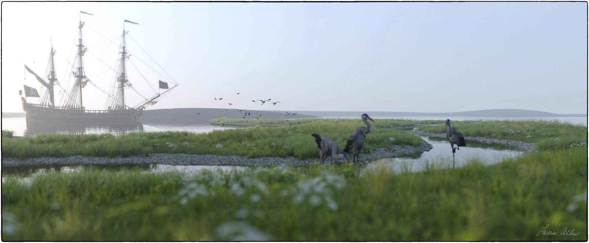 That extra background was clever and very effective! I also like the way the background items are in a bit of a fog to give them the sense of being far away.