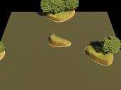 Second, I tried Lake1, everything else unchanged, and got this pebble-beach effect, which I thought was quite interesting. (I suppose the floor of the lake has been pulled up above the water level, so there is no vegetation to speak of but lots of river pebbles/stones/logs) I added a couple of plants in the foreground - they are not part of Oaks of course.