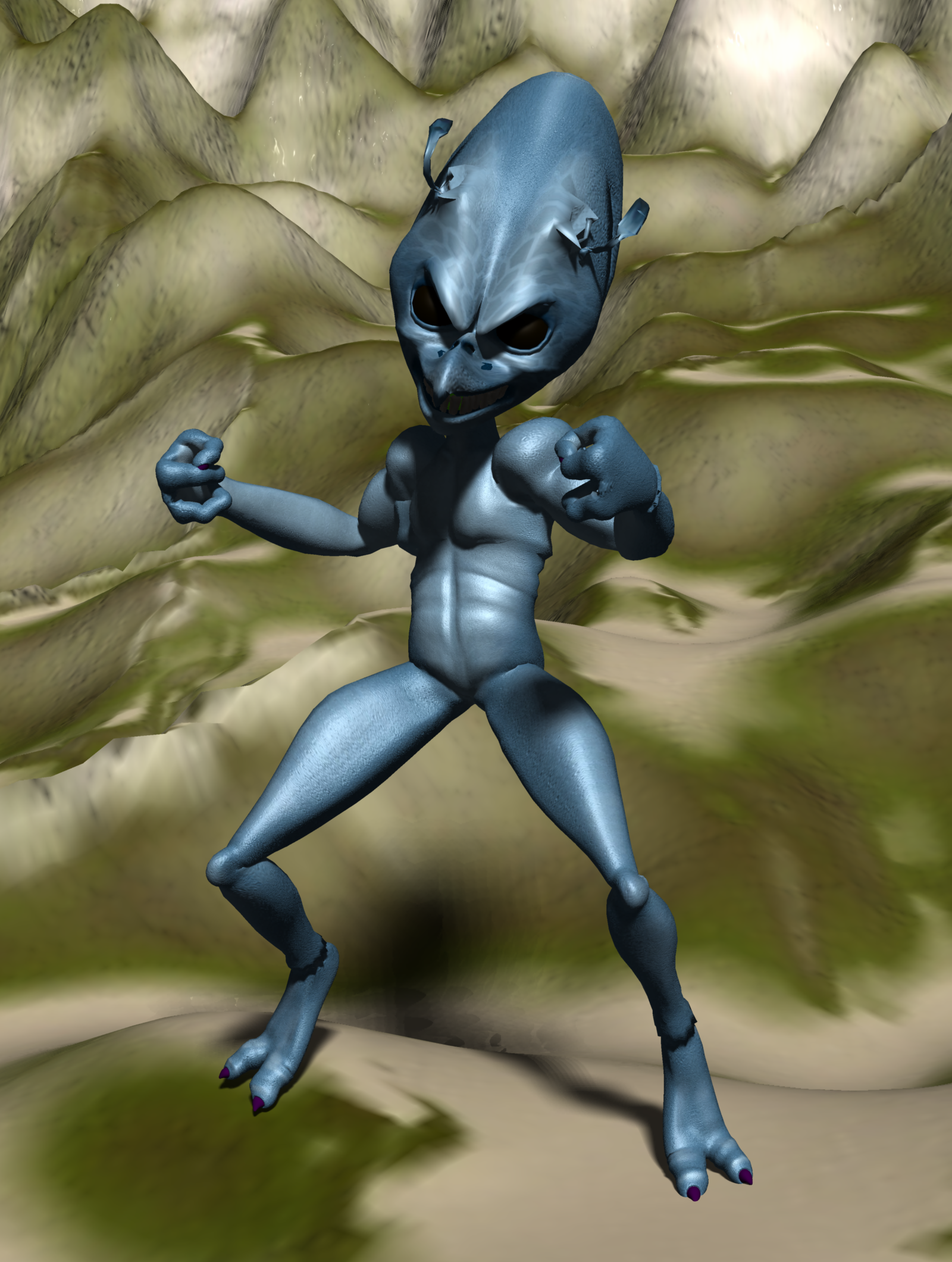 In the beginning, I wasn't sure that I could get The Thing rock texture to look how I wanted.  But the Carrara shader room astounded me.  I didn't have to import any maps.  The texture is all Carrara.  Toon 3 was used for outlines, and GMIC (within Carrara) provided some basic image controls.