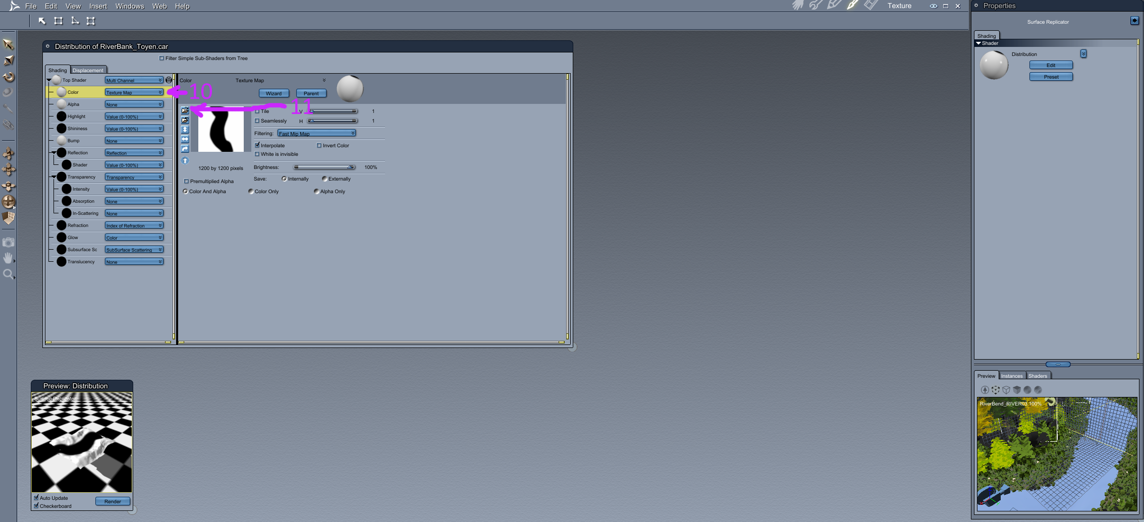 After loaded the Terrain obj into Carrara with AutoPosition and AutoScale turned off, loaded a Surface Replicator into the scene