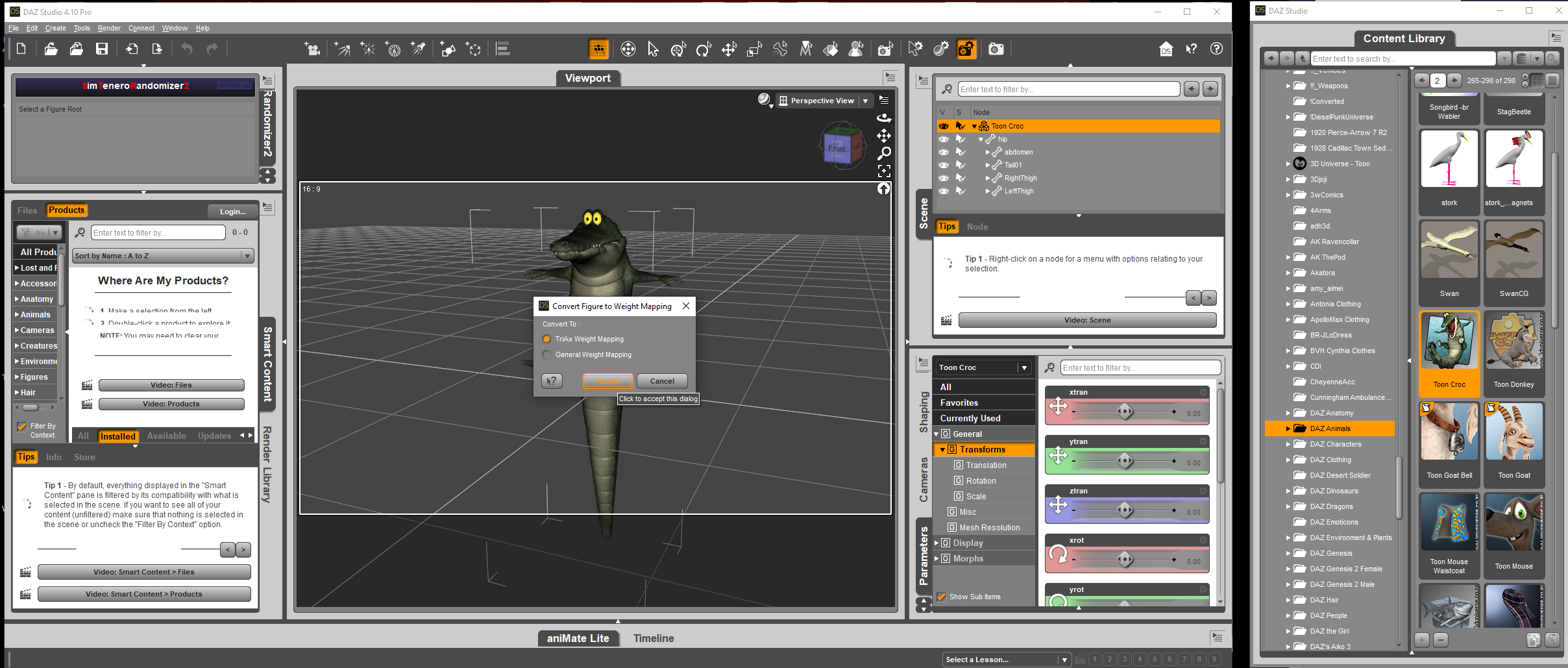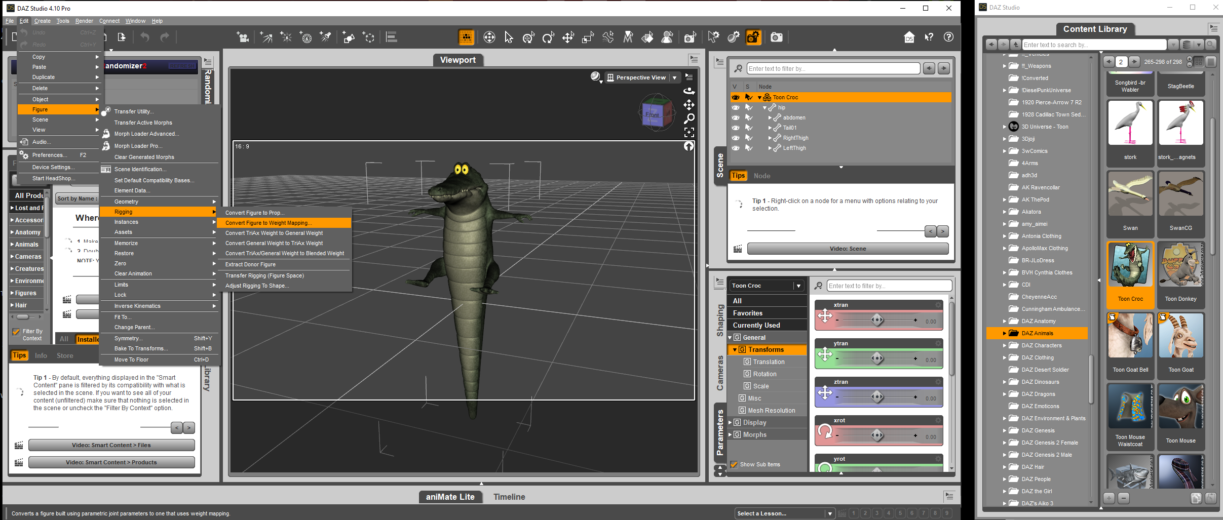 Opened Toon Croc in DAZ Studio, clicked on Edit - Figure - Rigging - Convert Figure to Weight Mapping