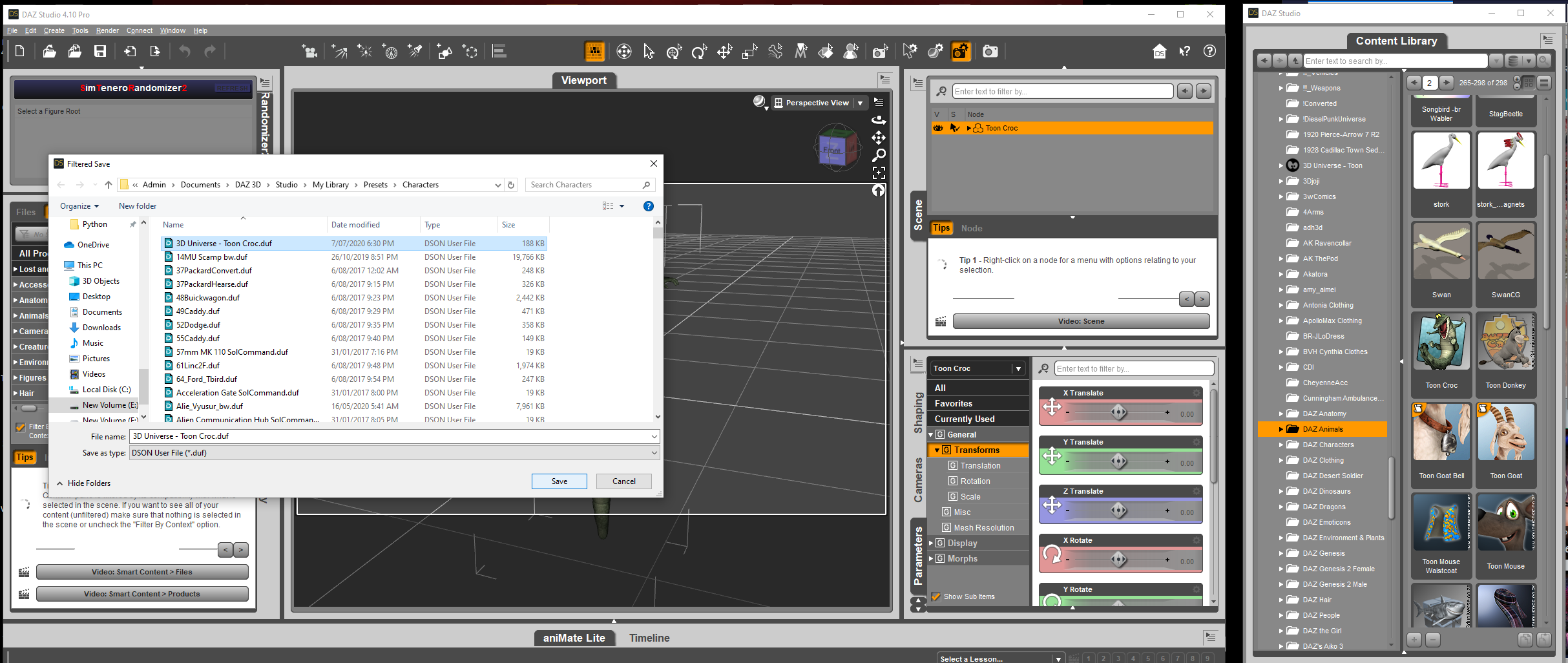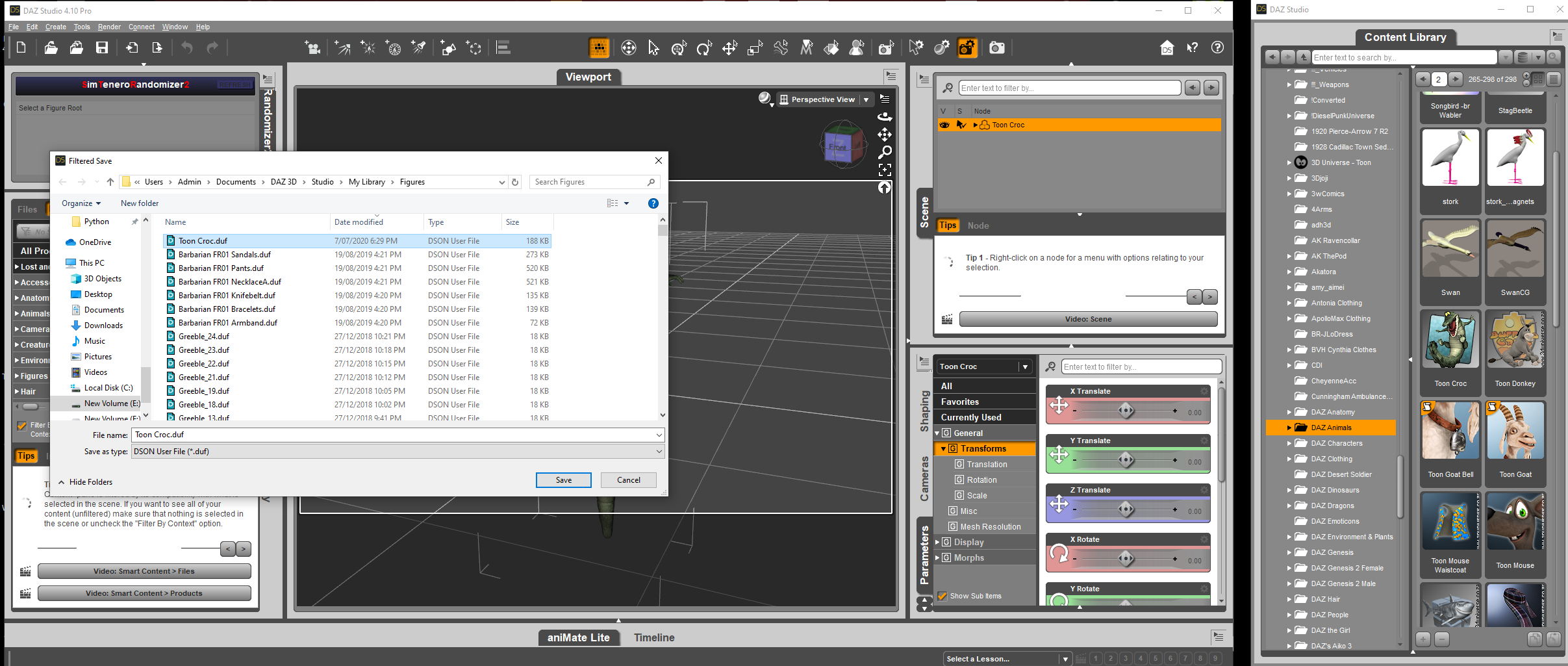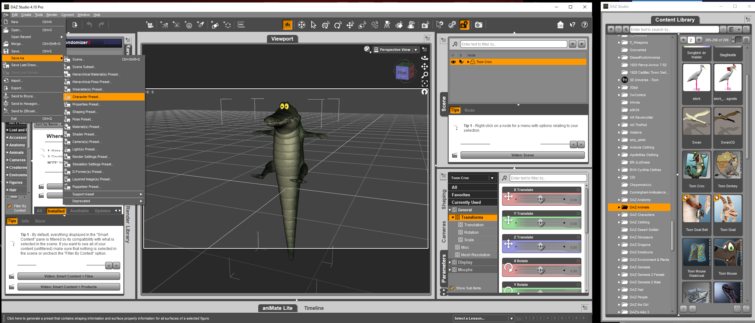 Had a problem with the Toon Croc when first loaded - no skeleton for posing