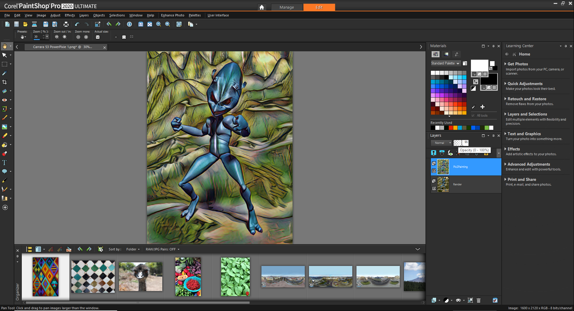 PicToPainting added as layer in PSP, Opacity adjusted