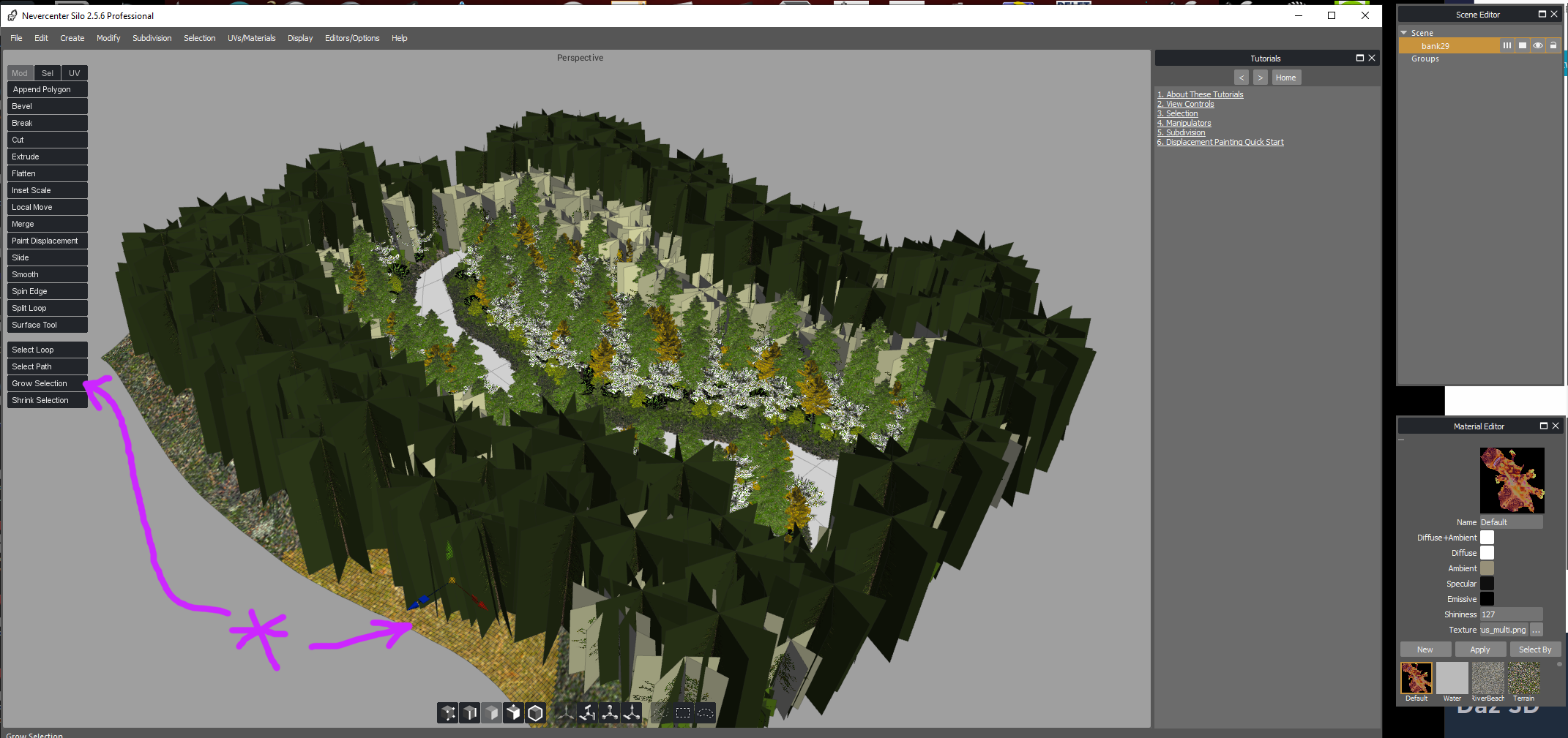 Using the Grow Selection command in Silo I picked the Terrain base