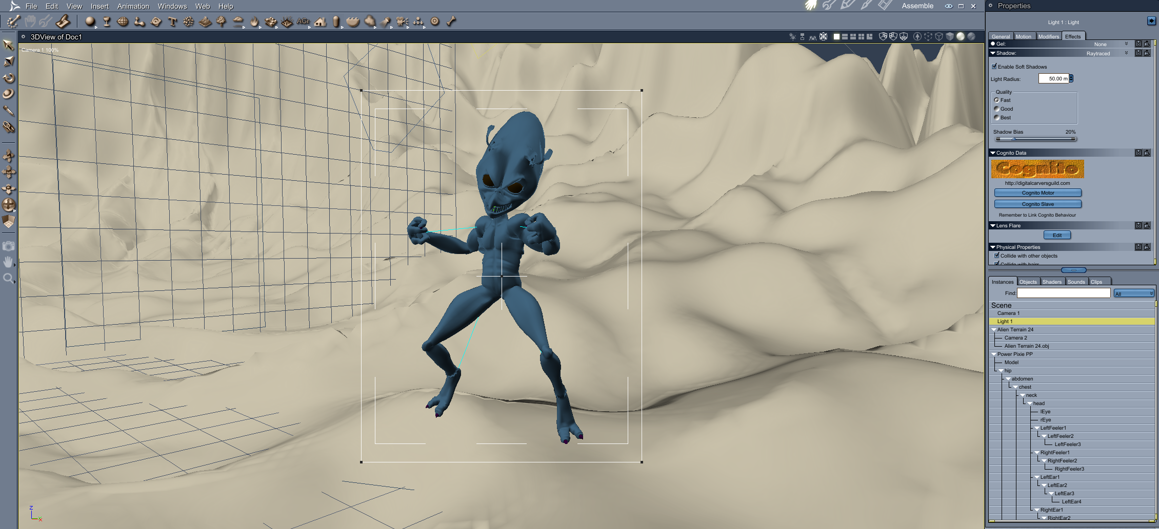 Darwin has a custom UV, so I loaded him in DAZ Studio and saved as a Character Preset and opened that in Carrara.
