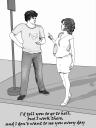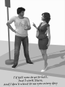 Sorry for continuing to be absent.  My good machine has been tied up with something that is taking way longer than I intended.  Here is a quickie that I'm not sure came out the way I intended.  It is supposed to be variant on tough urban wisecracking woman confronted with a boorish man hitting on her, but the man might look more like a beggar.  The final combines the outline from the coverage pass, the shadow pass and a GMIC filter black and white.  One panel piece.