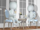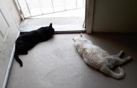 Gonna aim for a 'Far Side' style cartoon, 2 human sized cats and a cat sized human. smiley