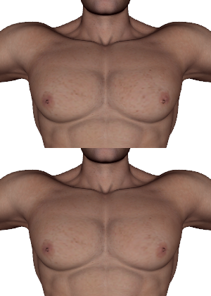 Here's a Photoshop Action that will align his left nipple correctly. Use it on his torso maps.
