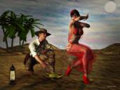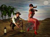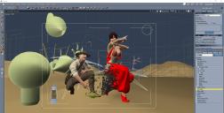 Daz content includes G2F and G2M, the genie outfit is As You Wish by Slosh, which comes with the genie lamp prop.  The adventurer outfit is Diana and Jones by Luthbelina.  Trees ae from the Carrara object browser.  Atmosphere is realistic sky https://www.daz3d.com/rm-realistic-sky-presets