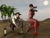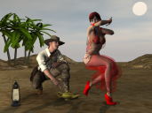 But this render came out of left field.  It has some really nice qualities (in other words, stuff I like smiley), such as pulp magazine textures and interesting posing.  I do wish that you had done more with the lamp smoke, as it could really add mystery (and a kind of authenticity) to the render.  I also think that the shadows look a little weird.