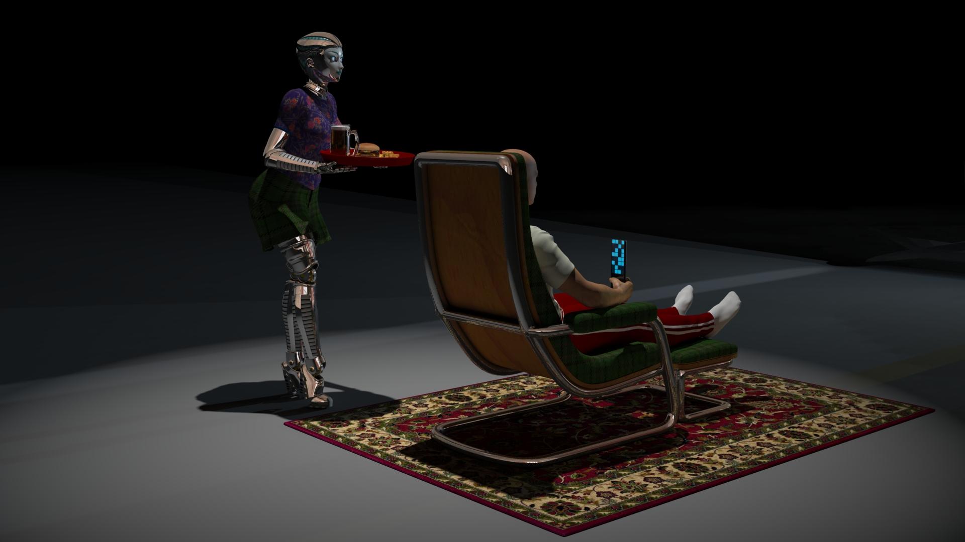 - let me guess, the content looking guy in the chair would like goodies served by an Aiko-bot. Who wouldn't? Excellent.