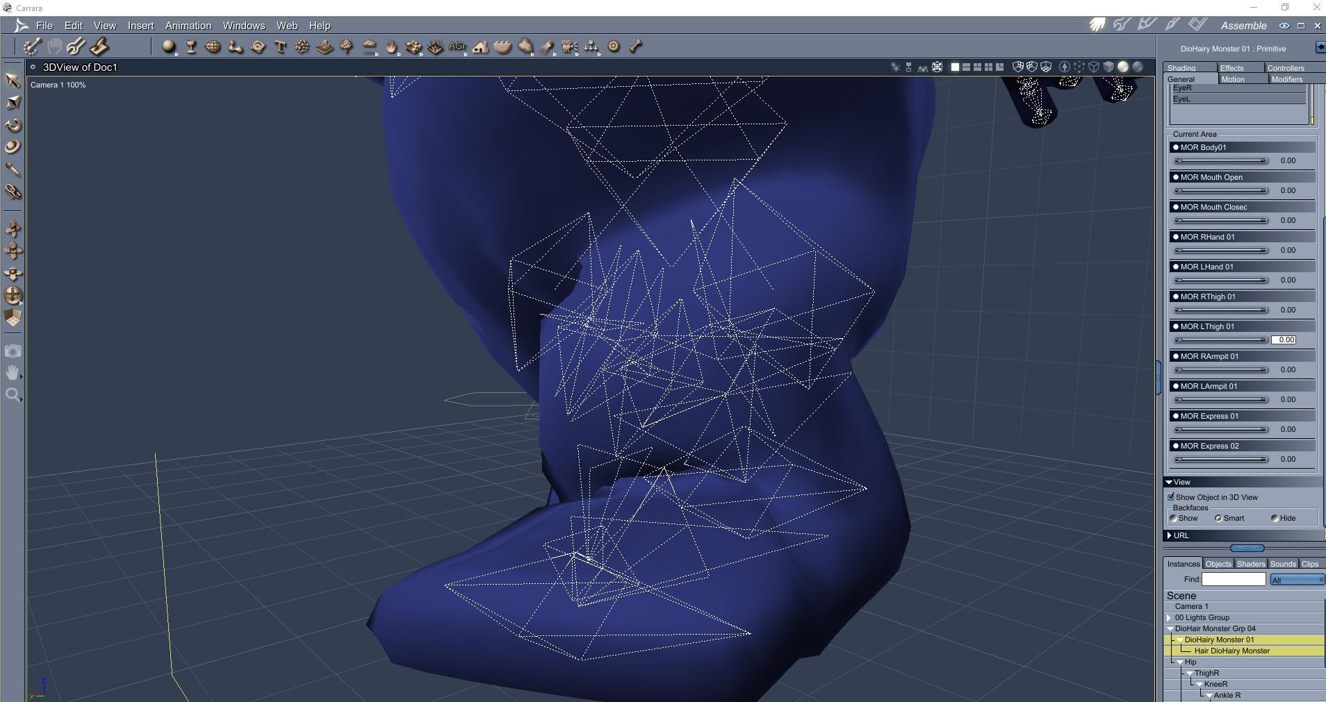 Here is something simple and predictable with the hairy monster. Dolly is from the Carrara Native Object Browser.