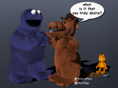 - my monster WIP does look like the cookie monster. Hopefully, looks enough like some generic monster from Monsters Inc to avoid issues with either.