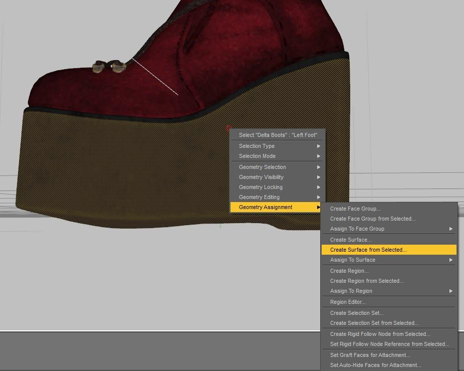 Name it whatever you want like Boot Bottom Left or something. Once you name it you can go to the surfaces tab and turn that material zone down to zero.