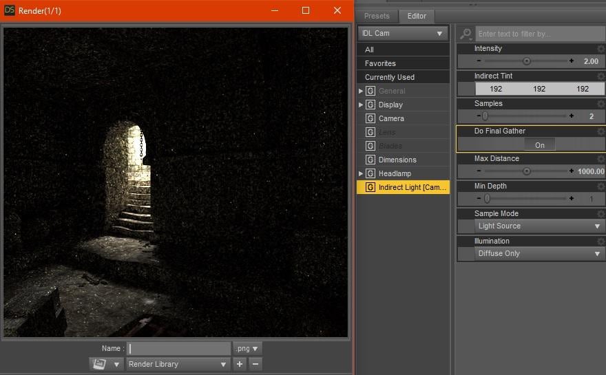 The Indirect Light camera settings: